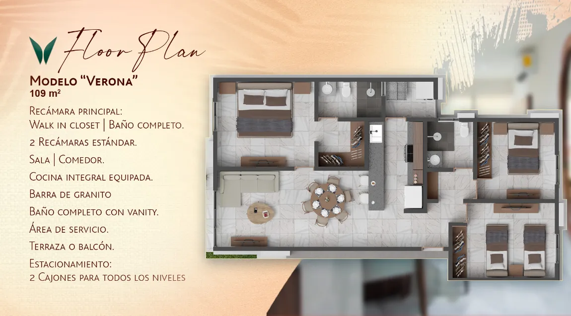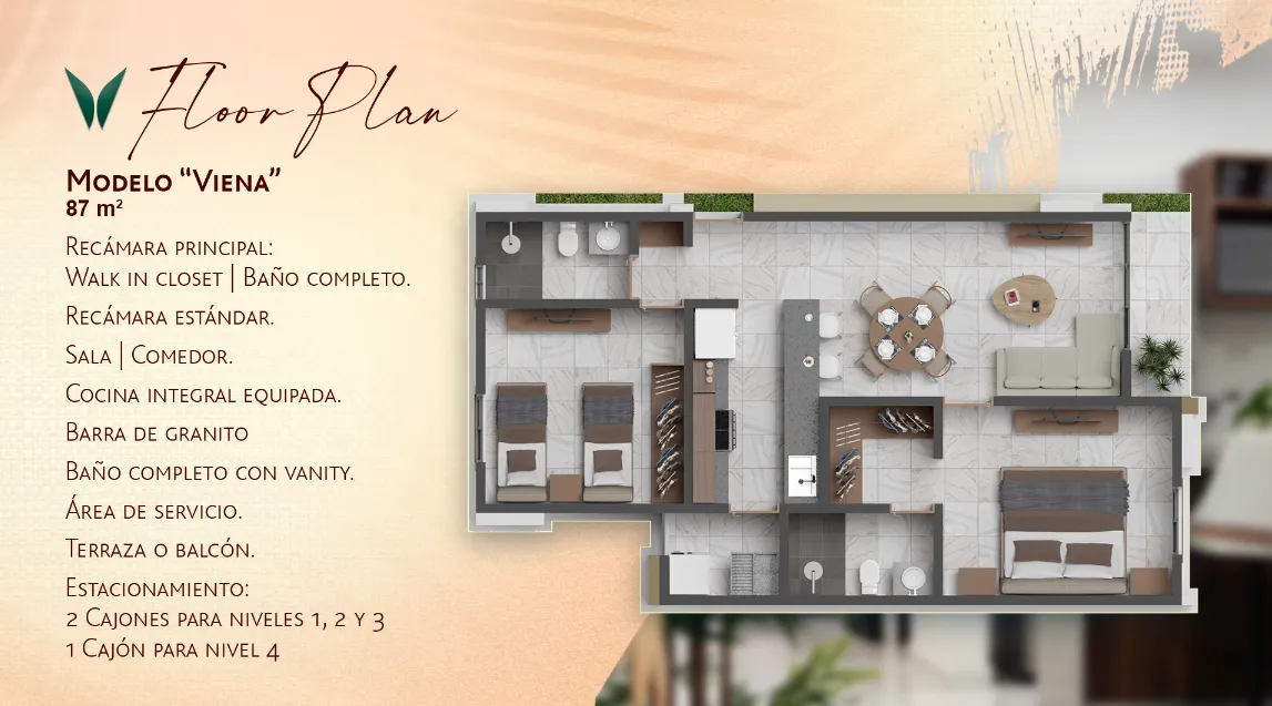 Vienna / 2 recamaras / 2 baños / 87 m2